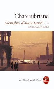 Cette quatrième partie des Mémoires nous conduit de 1830 à la date symbolique que portent les dernières lignes : 1er novembre 1841, trente ans après le début de leur rédaction à la Vallée-aux-Loups. Mais cet ultime volume ne fut pas écrit après les autres. Tout au contraire, il les accompagna et son écriture, comme dans un miroir, les réfléchit et à sa manière les recommence puisqu'il est ici question, à nouveau, comme si les trois « carrières » se redéployaient, de littérature, de politique et de voyages : en Suisse, à Venise, à Prague auprès du vieux roi Charles X. Et c'est une expérience du retour : du présent vers le passé, du passé vers le présent.